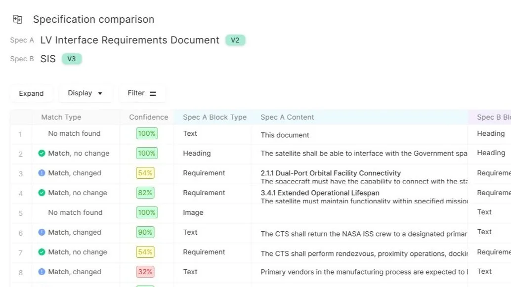 Stell’s PDF Import tool ingests government and defense contracts and converts them into actionable data. The smart Document-to-Matrix workflow structures requirements for allocation, verification, and change control. Complex language and requirements defined by MIL-STD-498, DO-178C, ISO 26262, and more can be easily navigated with Cross-Standard Search. Convenient MBSE support also includes a dual document + spreadsheet UI, AI tagging, graphical relationship views, and parametric modeling at early stages to assign parameters computational meaning.